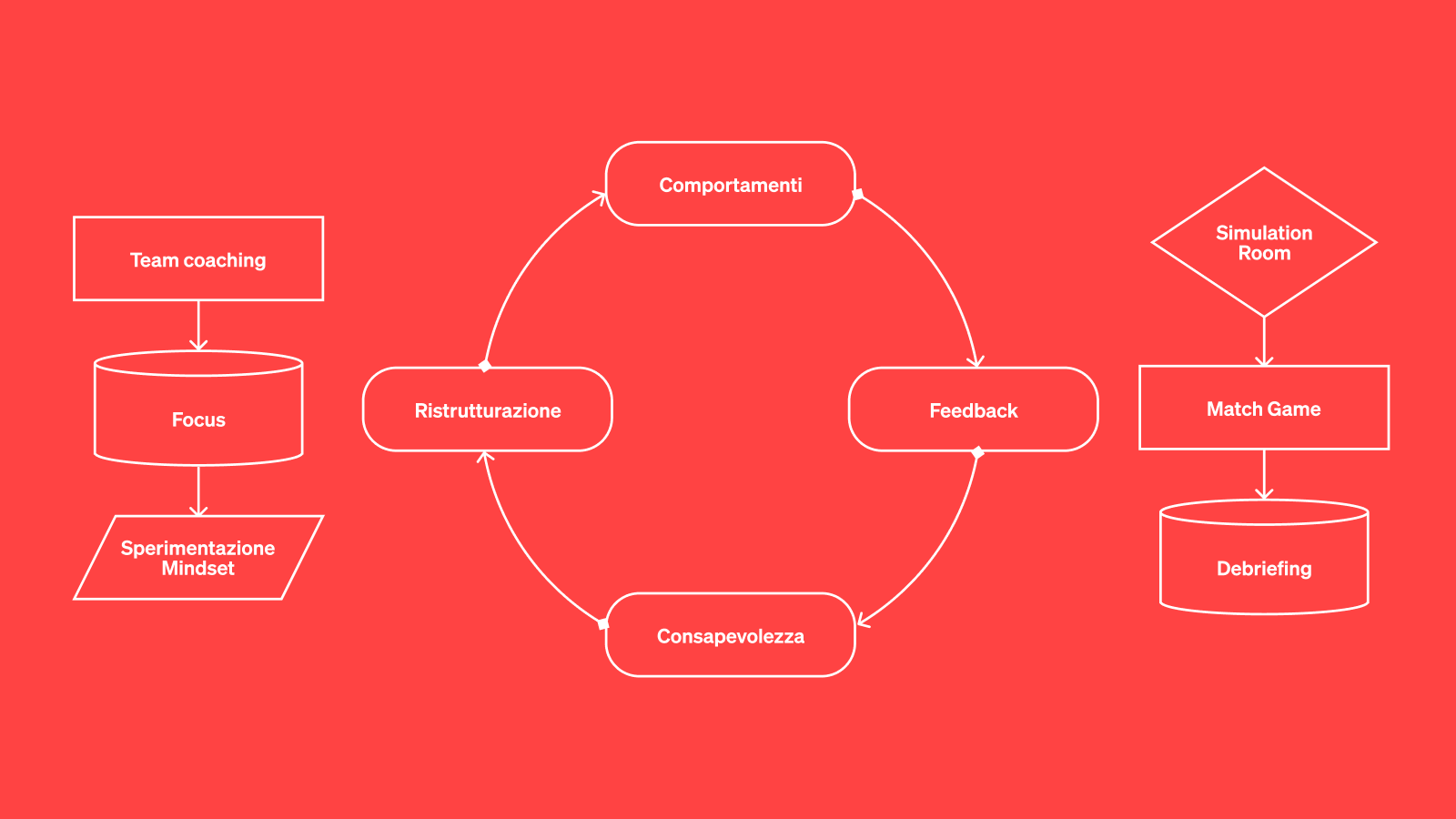 Nei bootcamp, l’acquisizione di tecniche e mind set emergono dalla pratica, dove attori specializzati vengono guidati attraverso auricolari dal docente, innescando dinamiche di apprendimento molto potenti in simulazioni realistiche.